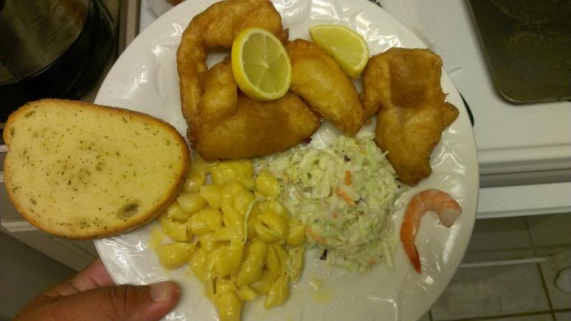 Beer battered red fish no one comented on it, I happened to batter some fish that way the other day and i hadnt done it that way in years.