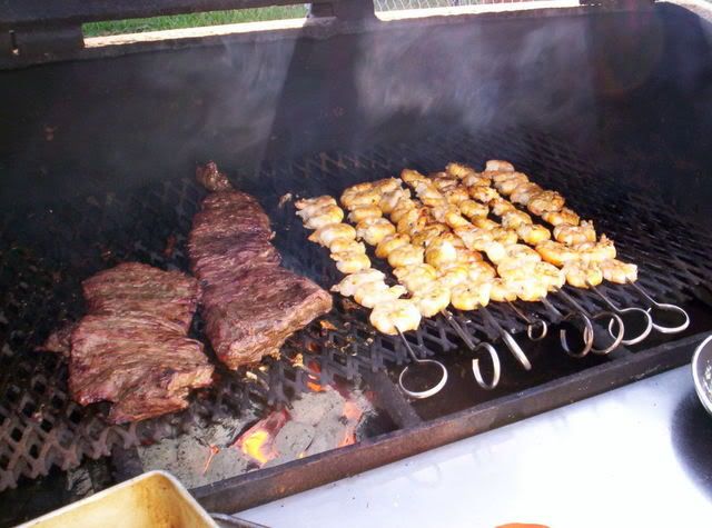 shrimp and fajitas on the barby-q