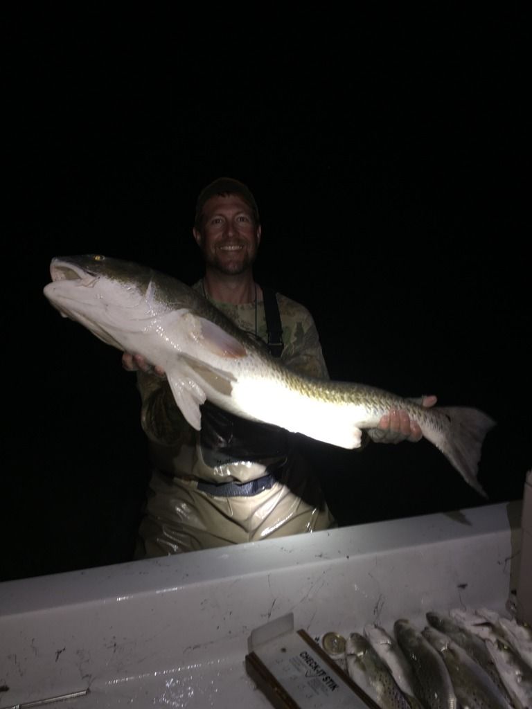 Had my older brother, brother n law and nephew(senior in high school) come down to try salt water duck hunting. They have become duck addicts in last year. They all made the drive down from Wichita Falls and we first hooked up with a duck hunting guide Friday morning and had fun but only a decent shoot. Got six red heads between the 4 of us(I have not duck hunting knowledge). We drove to Charlies and unloaded our gear at fish camp and got our fishing gear out. Now it was my time to take them out fishing, I guaranteed them trout:) we hit four spots with nothing. Then we went to area around south pass and the trout bite was on. Everyone got their limit and I hooked into my largest redfish on artificial. (Didn't get accurate measurement but guess is 40-42") the next morning we planned on fishing first and then trying the duck hunting thing on our own. Trout bite was solid again but we were left four short of limit and it was time to go find a spot to set up for a duck hunt. We ended up doing fairly well with it. We got four redheads and two widgeon.