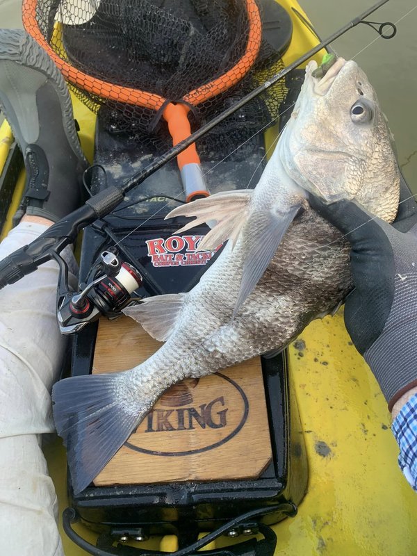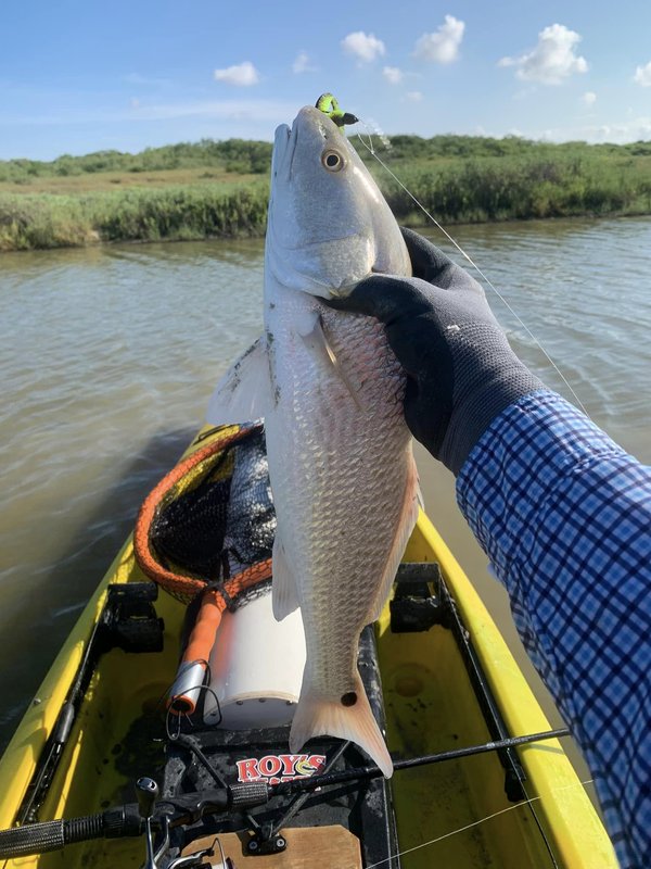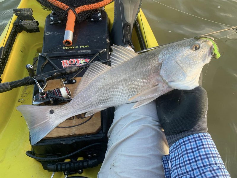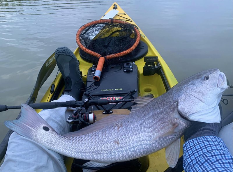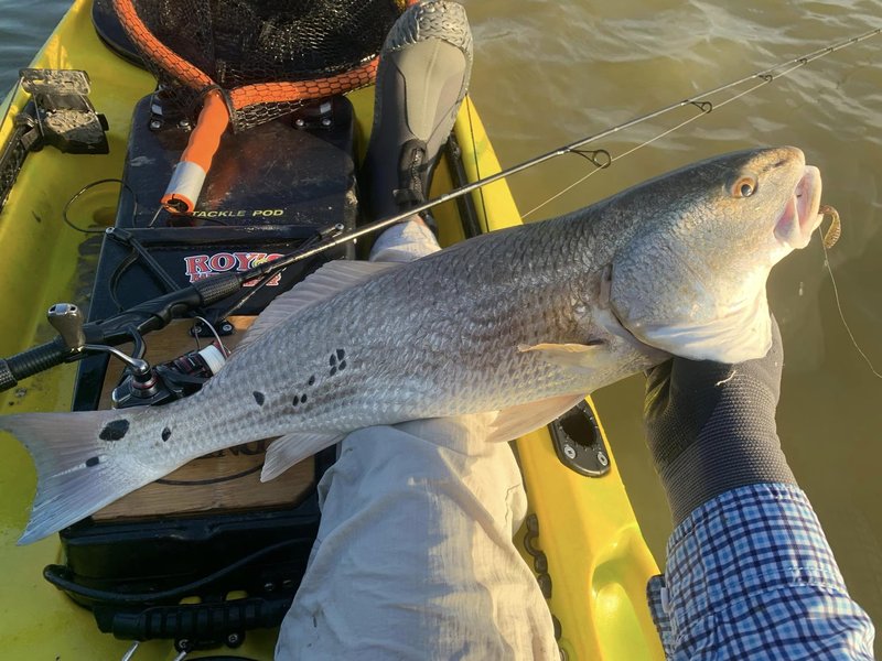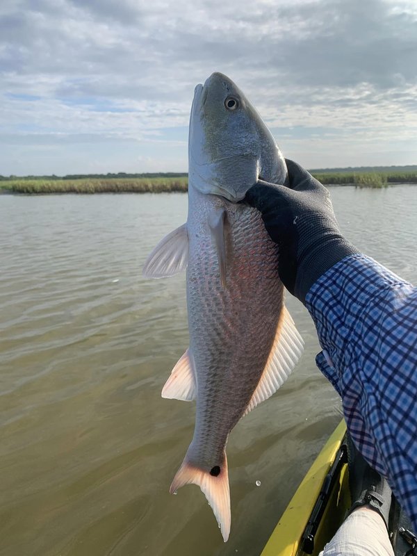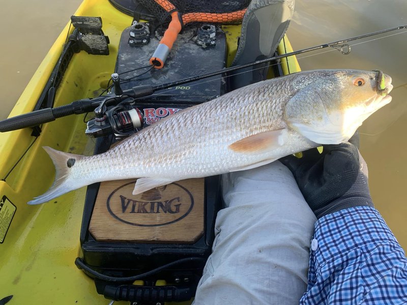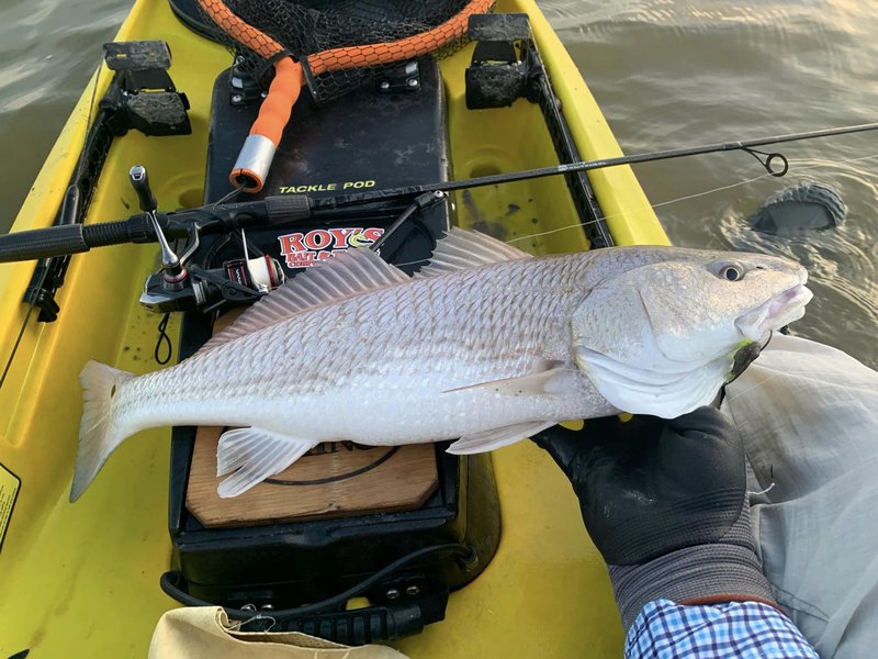 Saturday winds were light and fish were up and patrolling the farthest reaches of the incoming tide. I pushed my way through lots of mud and got 18 reds to bite. Four pulled the hook during the fight and one broke my 8lb braid on an obstruction, but 13 came to the kayak, making it a fantastic morning. I returned on Monday morning (Labor day) to a different scenario. The water level was 6" deeper and the rising tide had me looking in the same areas but with considerably more wind. Fish were not as easy to see and were not feeding very aggressively, but I did manage four reds and a drum before leaving to beat an incoming thunderstorm. Now the rods are resting and I am too, at least until the next weather window. Very Happy