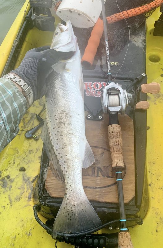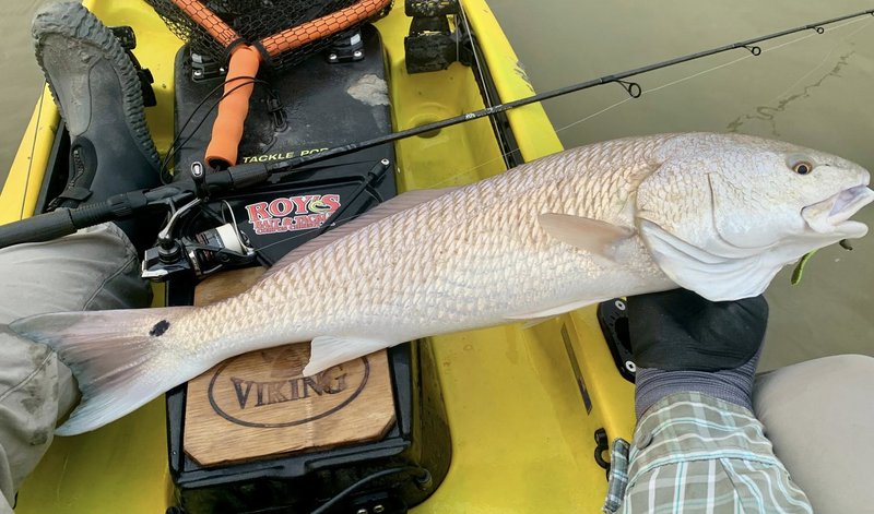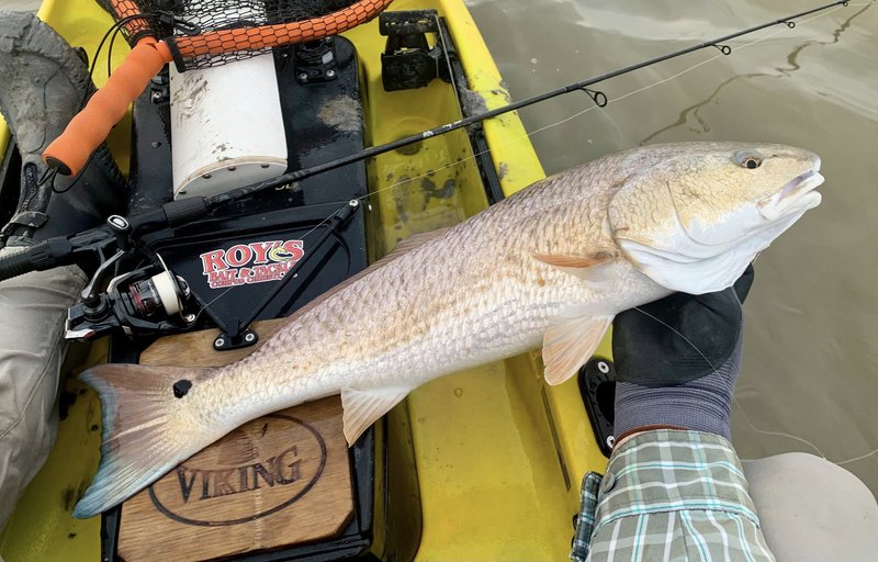 So yesterday I was awake by 3:00 with a searing headache and jet engines loudly roaring in my ears (four levels of my neck are fused and sometimes this happens), so I did the only logical thing and grabbed the kayak and paddle to try and paddle the headache into submission. This actually works most of the time, if I put in enough miles to wear the offending muscles down. As I launched the kayak into the early inky light winds were low and it was almost as if I was supposed to be on the water. Winds were calm compared to the last few days, but were still about 10mph, so I decided to forgo the usual starting point to focus on protected shorelines instead. This meant lots of barely hidden oyster shells that would scratch up the kayak, but that was the smooth shoreline where I wanted to begin. It didn't take long to find a redfish working the grass edge, but as he got close I ran up on shells and the headache was not better, lol. I continued on and found another fish, farther up in the grass, so I paddled a little deeper to avoid the shell and worked ahead to a spot where the grass ended to give me a clean shot at the approaching fish. As the fish exited the grass I put the bait right against the mud and began to creep it out into view. That worked, and the fish slurped the bait and tore out into deeper water. It was a nice 27" redfish and I quickly introduced him to the insulated sleeping bag on the kayak. As I approached the cut into a creek that would allow me to work way back into a lake, I saw another red on the other side of the entrance, heading the other way. I circled wide to avoid more shell and got ahead of the fish, but this one spooked as the lure landed four feet ahead. Sometimes I just have to scratch my head and move on.