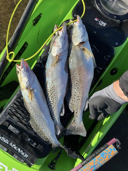 I headed for the water Monday morning since it was a holiday, and before daylight it was kind of cool, but once the sun came up it warmed up quickly. Big trout avoided me, but I ended up catching 36 of them (mostly slots), eight reds, a flounder and then before I left I tried a different spot just to see if any fish were still around late morning. Two trout and then a hard hit that pulled some drag and quickly ran one way and then another. I saw a flash of fins and thought "jack crevelle in winter time near a grass flat?" Then the fish came closer and it was a solid pomp. On a lure! At just under 20" it joined three trout on the stringer and I headed home ready for a fish dinner.