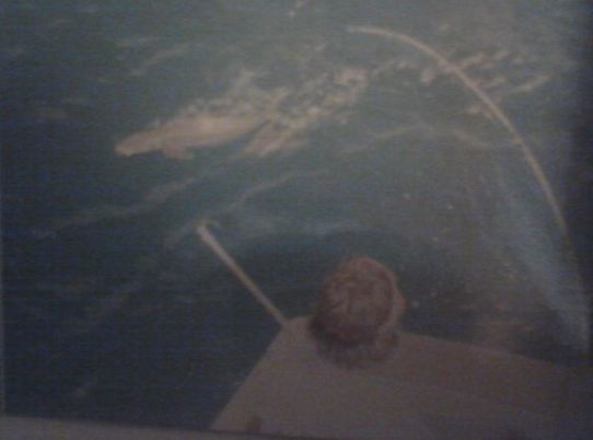 I am just about to get the "Hell" beat out of me by this big ling we caught at the "Samedan" Rigs SE of Bob Hall Pier. This was before Packery Channel and fishing used to be unbelievable when the conditions got right. I'm using my "Special" gaff for this sized fish. It was a piece of 3/4 galvanized pipe 8 or 9' long with a 4" shark hook bolted and clamped to it, with the barb filed off. It was ugly, but "Always" did the job.