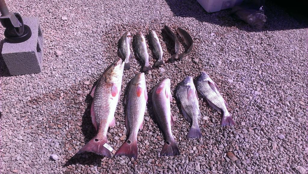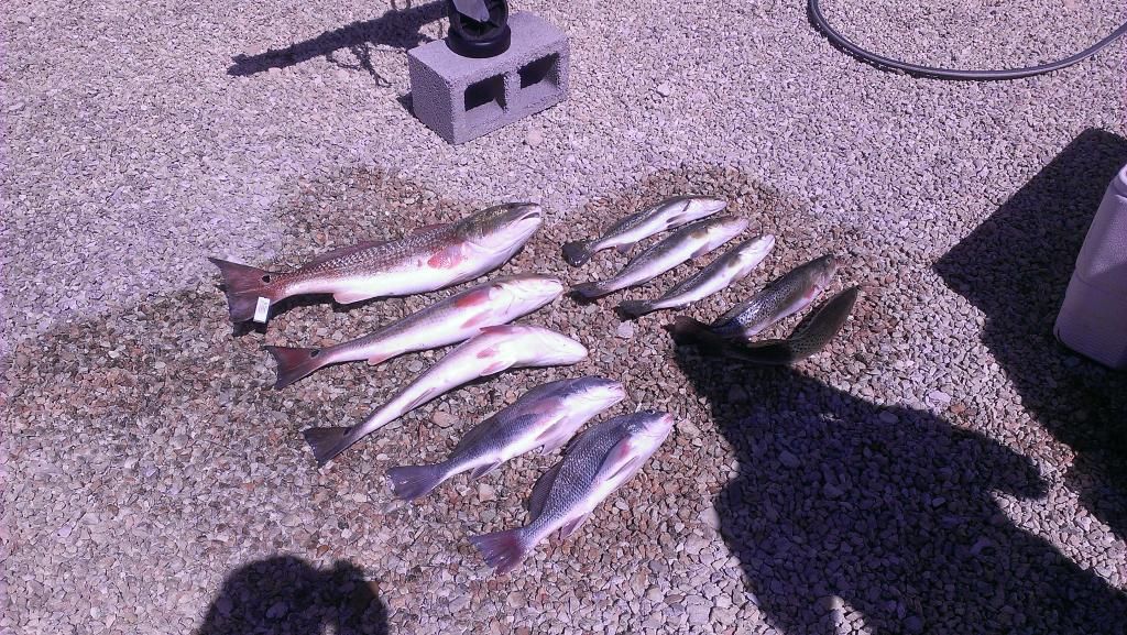 Man its been forever since i have hit the bay fishing. We started off just north of bird island on the king ranch side. the wind was pushing us straight north so we wernt able to drift through all the different depths. tons of dink trout all day. about 9am i got my first sizable fish. first time ever filling my red tag here, she went 29 1/2". a few minutes later my buddy picked up a 23" red.We managed to cover all the way up to just south of pita island. Over all the water was still pretty dirty, bait of choice was live shrimp. one of the slowest days of fishing i have had in a while.