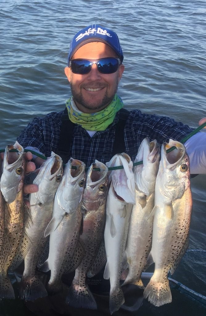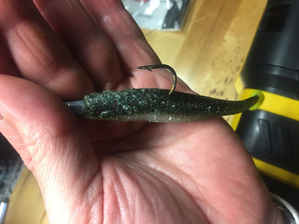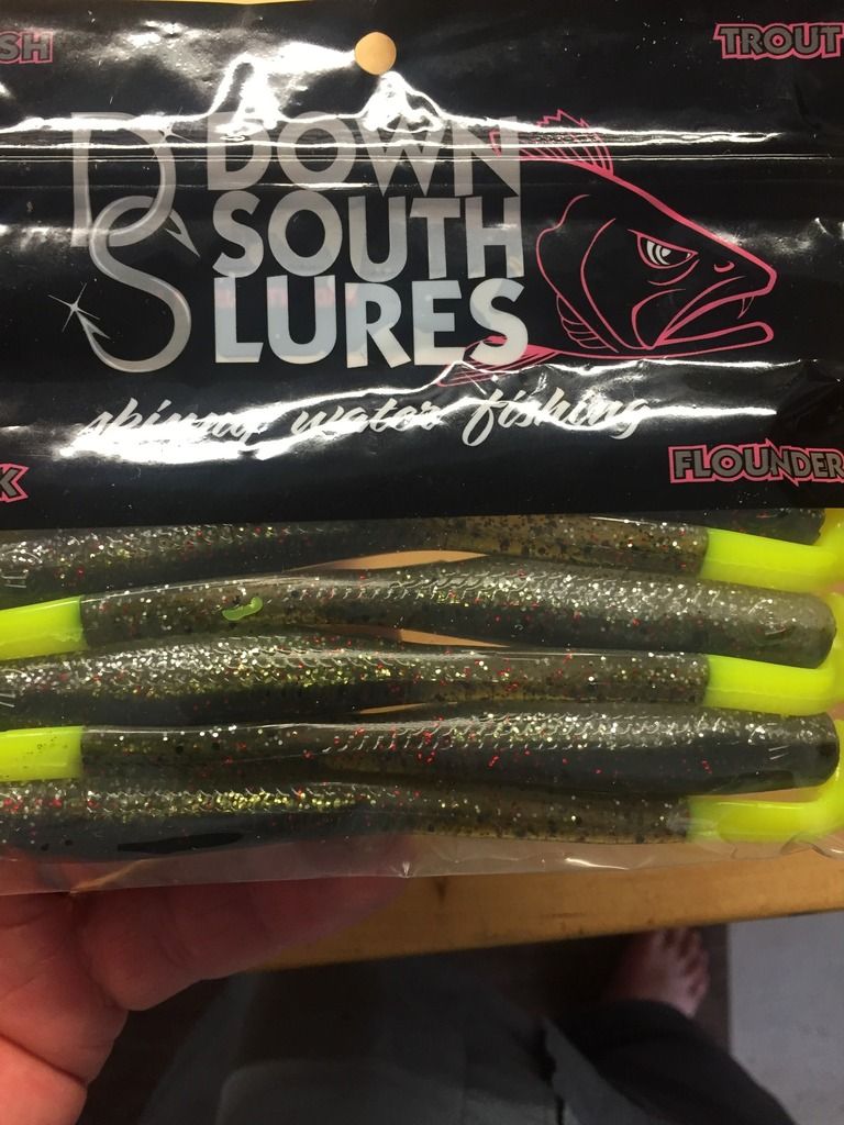 Headed out from Charlies early yesterday morning. The cut leading out to the bay is impassable with ultra low tides(numerous boats getting grounded). We headed down the intercoastal towards seadrift and made our first stop around southpass area(cut through southpass also permanently closed in) wanted to compare the action and toughness of the Down South lure vs Academy's thumping mullet. Pleasantly surprised the action was a little better and the lure held up to 55 trout. Have pics of the Down South plastic and my thumping mullet(that lasted 4 trips and about 150-200 )trout. Small trout were stacked up in the deeper cuts and larger trout where on edges of depth changes and in shallower flats with scattered shell. After quick limit and with low tides we went out for a little exploring for future sweet spots.