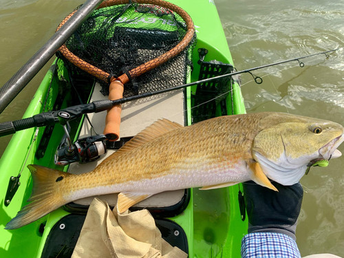 The calendar may not recognize it, but any Friday that allows me to quickly catch quality fish is a good one. After work Friday afternoon I hurried to the water, because the tide was dropping out and I knew there would be an afternoon bite to make things interesting. The breeze was kicking, but there wasn't another soul on the bay as I made my way across into the target lake. It is full of weedy patches that grow to the surface, and the area where several lakes connect seems to be a magnet for tailing fish lately when the tide is moving. True to form, when I arrived the fish were feeding. I approached the first school of tails and placed the lure right where it would drag through all the hungry reds ...and nothing. They were so busy nosing around in the grass that they weren't noticing my little Trick Shot lure. It's designed for shallow water where stealth is needed to avoid spooking fish. In this foot deep water they weren't noticing it, so I switched rods and tossed the craw lure that pushes more water. Yep, that got their attention and I pulled in a fish that was a fraction of a millimeter below 28 inches. I measured twice to be sure it wasn't oversized, and I slid him into the box. As I sat quietly and watched the surface, I spotted another group of reds not far off. I paddled over and pitched the craw over them and right back through the action. Yep, it was working as another fish thumped the lure. This one was just over 30" so it went back swimming. As I released this fish I spotted another large group of fish a hundred yards away, and those big dark tails told me it was a pumpkin patch worth visiting. As I got close I waited for larger tails to show, and I landed the craw right between three dark tails. One of the fish didn't appreciate the intrusion and it inhaled the party crashing craw as soon as it sand into view. This huge school broke up and went in at least three directions. As I fought the fish on the line I tried to keep track of where the others were heading. One group popped back up 20 feet away. I wedged the first rod under a leg and grabbed the Trick Shot rod. These fish recognized a free treat, and I hooked a second fish. After the first run it spit the hook, so I quickly went back to rod number one and landed that fish. I could tell it was oversized, so after releasing the big fish, I picked the other rod up and made another cast to the school that was still in range. It worked, and I set the hook on another good looking fish. This one ran circles around the boat and spooked more than a few fish that had laid down to figure out what was going on. There were lots of mud boils as fish scattered in all directions. A couple of them ran through other feeding schools. It was like a domino effect that was shutting down all my target groups, lol. Things finally got quiet again and I released the fish that was still sitting in the net. I brought the hooked one closer and netted him too for a photo. Doh, I forgot to get a photo of the other one! Oh well. I photographed this one and it was a lovely 27, so it went into the hatch. I searched but couldn't see another group of tails. I figured I should let these rest for a minute so I continued on to the next lake. As I got close to that lake a shower came through pushing a strong wind. I paddled to the shore to wait for it to pass, and for a few minutes I casted to the little drum that were tailing nearby on this piece of protected shoreline. The fish were visible, but they were not serious about eating a lure at that point. I played for a few minutes until the winds came back down to reasonable levels. As I looked ahead to the next lake I scanned closely over the part of the lake where I expected tails. Yep, sure enough I couldn't see the tails from that distance, but birds were easy enough to spot from 400 yards. They were hovering over one spot and swooping down every few seconds for a jumping shrimp. I headed over and got upwind of the school. I only got three casts at this group, but it resulted in three more fish. Once they broke up, I looked around in all directions carefully. Once I determined there weren't more visible tailing schools, I headed back to the truck. It was only 5:30 and there was still time to take my wife to dinner. As I crossed the bay toward the truck, I stopped to check a new little lake I had noticed on the map. It wasn't always accessible but the tide levels were pretty high, so I stopped in to check it out. To my surprise, the lake inside was knee deep and held fish. I stalked several small reds and drum, and finally got a 20" drum to eat a lure. I hurried back to the truck and filleted fish, then headed home for a shower. Momma was happy to accept an invitation to dinner out, so off we went to enjoy some quiet time away from distractions.