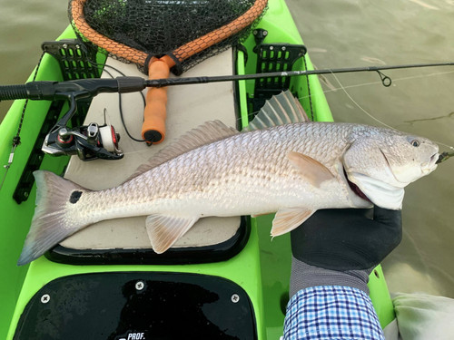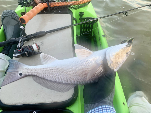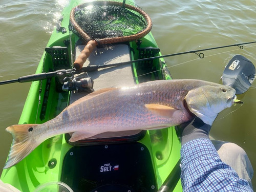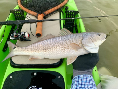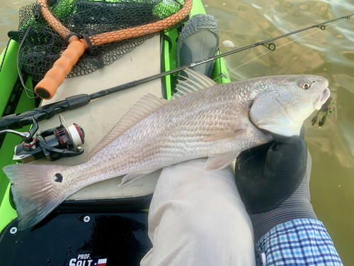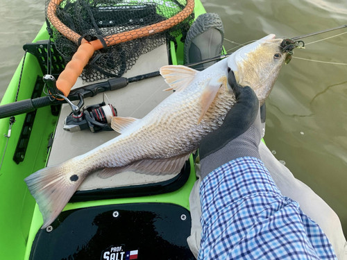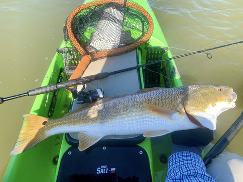 After Friday night's easy success, I left the gear and kayak in the truck for a rematch the next morning. On the drive to Copano I noticed the red "battery" light lit up on my dash. The battery was not very old, and I wondered if the new faint noise my truck had started making a few weeks ago was the alternator going out. I could turn around or just go fish and hope the truck would fire up afterward. I'm a pretty simple guy so I headed on to the bay and said a little prayer. I parked at my old launch site where the truck would be visible from the road and give me a better chance at getting a jump if needed later on. I paddled off into the darkness toward my tailing lakes. As I got to the lakes, I passed quietly through the tailing areas, working toward the back of the last lake. It was nearly high tide, and I figured fish should be at the back of lakes looking for food in the newly accessible areas. I spotted the white light of another kayak across where I intended to begin circling the lake, so I decided to work it in the opposite direction. By the time I got to his location he would have probably moved or we would pass in opposite directions along the shore somewhere. I was nearly all the way back when I began to spot fish. They were quietly working, with barely a visible sign - but if I watched carefully and kept the noise down signs were there. Near a little drain I spotted a suspicious faint wake. It was a red crawling submerged, but his back was barely covered by water and I could see the faintest wake. I waited what seemed like forever for the fish to close the distance before gently placing the Trick Shot ahead. He surged ahead and smashed it, and took off for deeper water. This fish couldn't manage to strip much line, and I quickly had the 20" fish in the net. As I released it I spotted another wake a little farther back. Slow pushing allowed me to drag the kayak closer without alerting the next buddy. I got the lure ahead of the fish and it played along with another thump and run. This fish measured 22 but was released. I was placing my bet on larger fish coming around later. As I worked around the last two coves on the windier side of the lake, I managed to catch half a dozen lower to mid-slot fish. I kept one 24-incher since I still had not managed to find any large reds. I completed the circle of the large lake without any more takers. When I got near where the other kayak had been parked in the pre-dawn darkness he was already gone. Maybe he had found fish and already caught what he was looking for. I continued into the next lake, finding no tailers yet. So before heading to the last tailing area I took a side trip behind a long shore that would allow me to slow down and look for drum or reds while I waited for the tailing activity to start up. As I was working along the protected shoreline and waiting, I spotted birds across the grass in the tailing target area. It was clear that they were on fish, so I put the paddle into high gear and headed around to the area. As I got close, I could see the tails under the birds, but I also spotted a small group much closer. Not one to turn down prefectly good feeding behavior, I stopped upwind of the close fish and put a lure beyond the fish. As I worked it back through them one struck and broke up the school ...but he totally missed the lure. I pulled the crawfish in and it was missing both claws. When most people see a Z-Man Craw their first comment is that the first fish to bite will rip off the claws. Well after catching literally hundreds of redfish and drum, this was the first time I had a fish remove one (or both) of its claws. Another pair of fish showed up within range and I tossed the green weenie looking clawless craw into the tails and got no takers. I pitched it again with the same result. Alright fine, you picky fish. I switched out the torn lure for a fresh one that had all it's "defensive gear" and immediately got a hit from one of the fish. Once this fish was secured in the box I headed to the larger school that still had birds marking it for me. There were lots of large tails here, so I waited for the big ones to show themselves. The lure landed just beyond the big dark tails and I twitched it. Boom! A big red tore across the flat ripping drag from the little Vanford giving that lovely muted metallic clicking sound as line left the reel. I got this toad in and knew without using the measuring board it was oversized and destined for release. The school was still working, and had turned back in my direction so I pitched the bait again and caught a 27" fish that wanted to check out that new insulated box. Wish granted my friend. I caught several more fish but all seemed to be larger than allowed, so when the action died off I turned back to the truck with only two fish in the box. Before I got back to the launch, I surned aside to check that new little lake. As I got in it was clear the water was higher than yesterday, and I wasn't sure if fish would be visible ...until I looked farther back in the open area. Two lovely dark tails were waving to me as the fish worked through a grassy patch. I got close and lost the tails for a minute. Soon enough they popped back up a few feet from where I had lost them. One cast was all it took to collect a perfect 27" fish and finish a limit. It was time to head home and be a bit more responsible. Thankfully the truck fired right up, and I got home and cleaned all the gear before removing the alternator. At the parts house I was reminded that it's not 1985 anymore and that parts are expensive. A rebuilt alternator ran me $259 WITH the core discount. Oh well, I got it into the truck and my old baby was tired of not being charged for a while. It turned over slowly but fired. No more of that faint whining sound was heard and the battery light was out. Success! Now its off to work and waiting impatiently for the next chance to chase some fish...