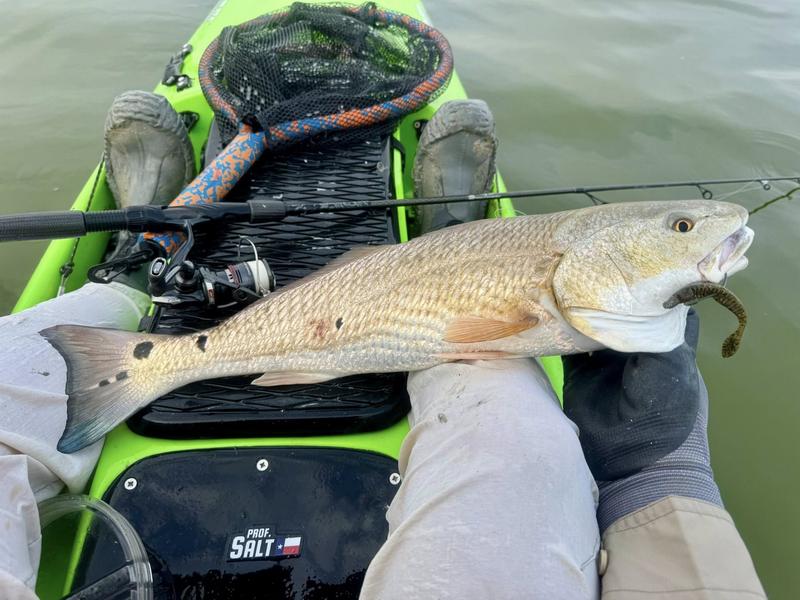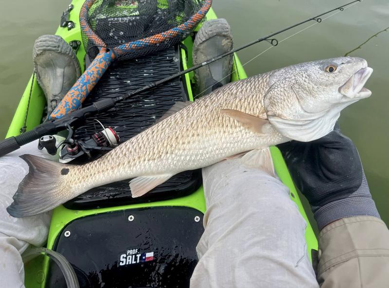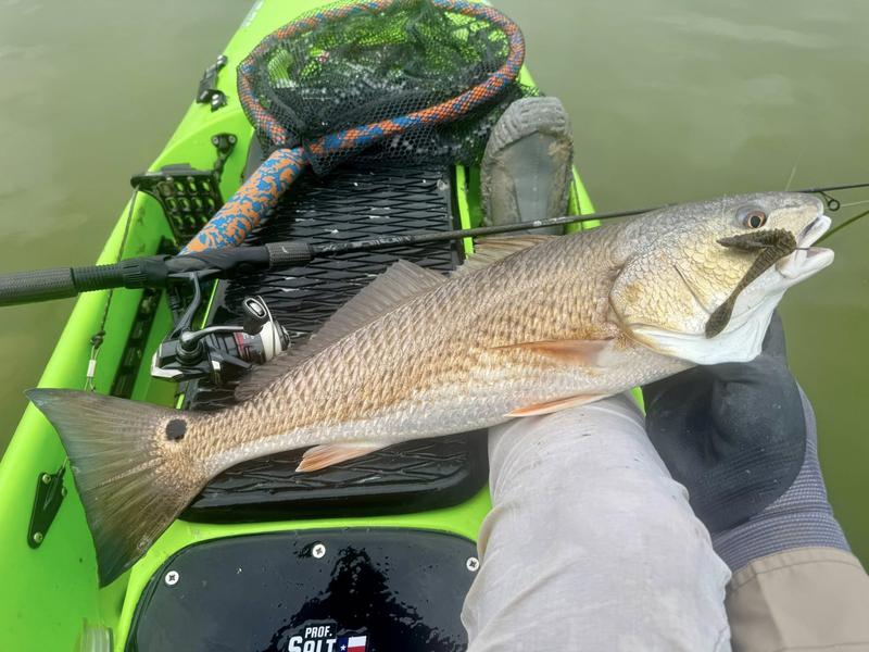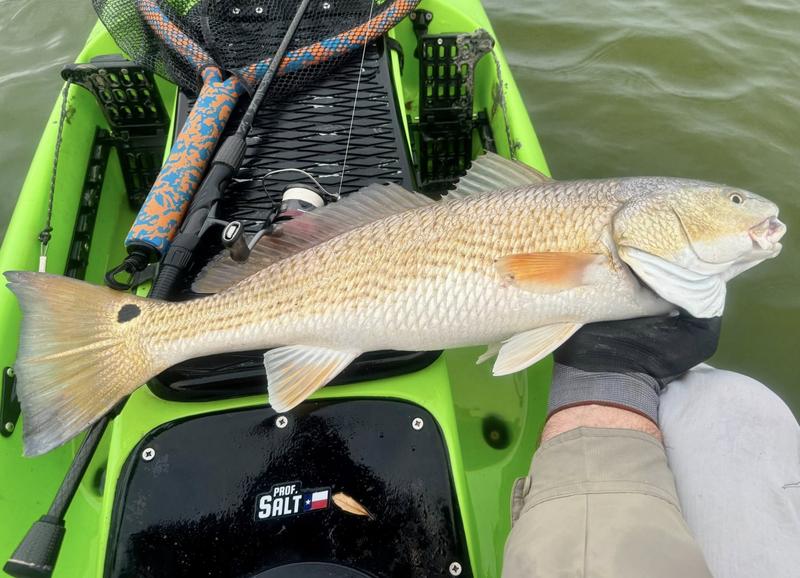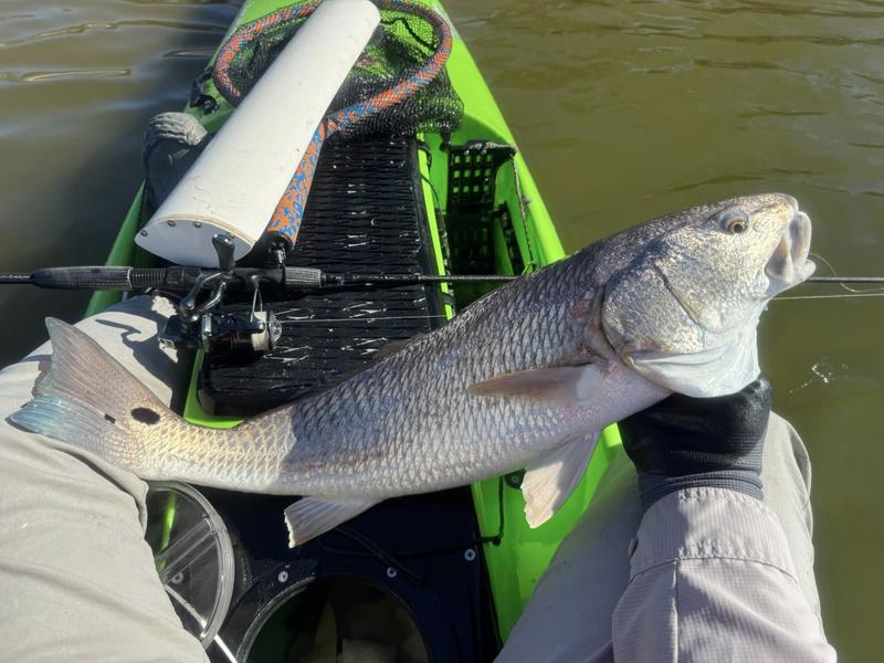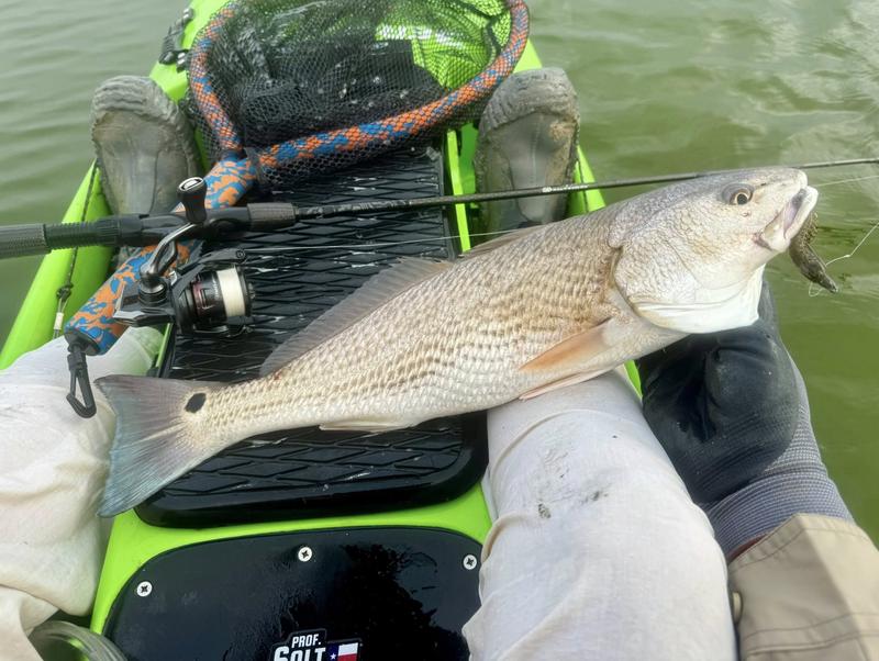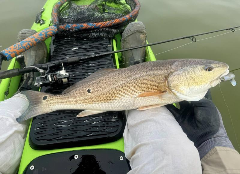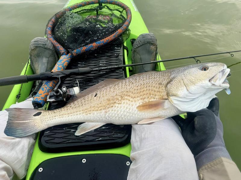 The problem with fishing on Spring Break is the traffic. Finding a quiet place to fish can be difficult, so I decided to give the river a try. I launched behind the veteran's cemetery and worked upriver where there was less chance of encountering traffic. Now that ship channel dredge has ruined the flats I knew I wouldn't be able to paddle there, but I gave the river itself a try. There was more than a fair share of winds, but the river offers a bit of protection so I paddled Monday, Wednesday and Saturday mornings. Monday I found fish feeding around a drain that emptied a long ditch that was loaded with hatchling menhaden. The tide was slowly dropping and emptying the tiny fish into the river for a feast. I just hung around and casted to the fish as they crashed the surface. By the time I hit 13 reds and a drum, I was ready to head home to work on other projects. Wednesday morning the air was still but reds were shy. I paddled eight miles of river edge and found six reds making barely visible wakes ...and behind the kayak six trout and a flounder fell to swim baits that were following behind. The river is ideal for trolling while stalking reds. I paddle 30 or 40 feet from the shoreline watching for me shallow friends, while the baits behind me thumped along near the bottom in 4-8 feet of water. Saturday I returned, worried about weekend traffic, but there were only a couple of boats moving through so it worked pretty well. Fish were staying quiet, but I found four barely perceptible reds and trolled up five trout so no complaints here. Three trips gave me 24 miles of paddling, 22 reds, a dozen trout and a flounder and drum. Now it's back to work to catch up on emails and meetings.