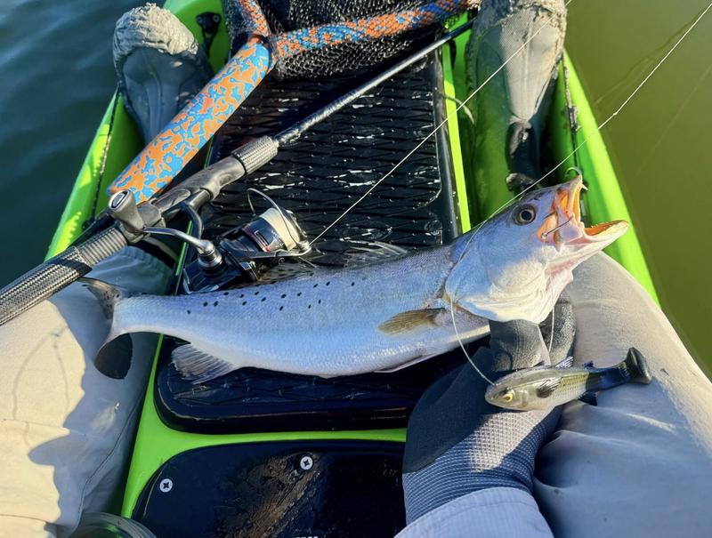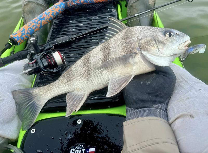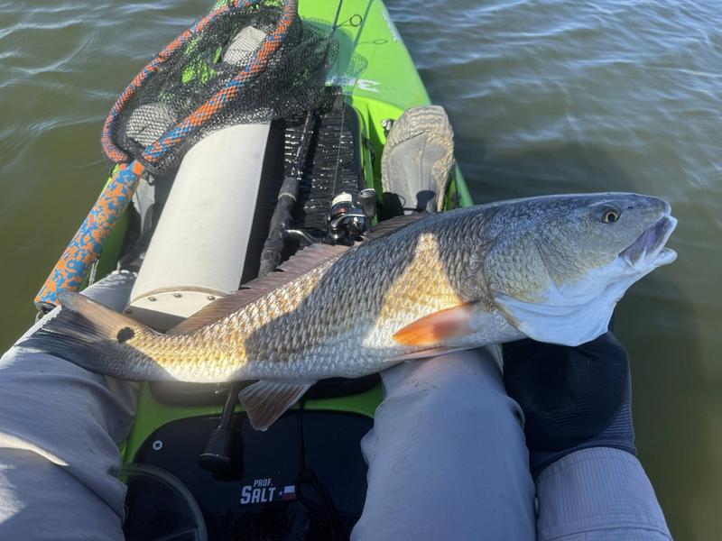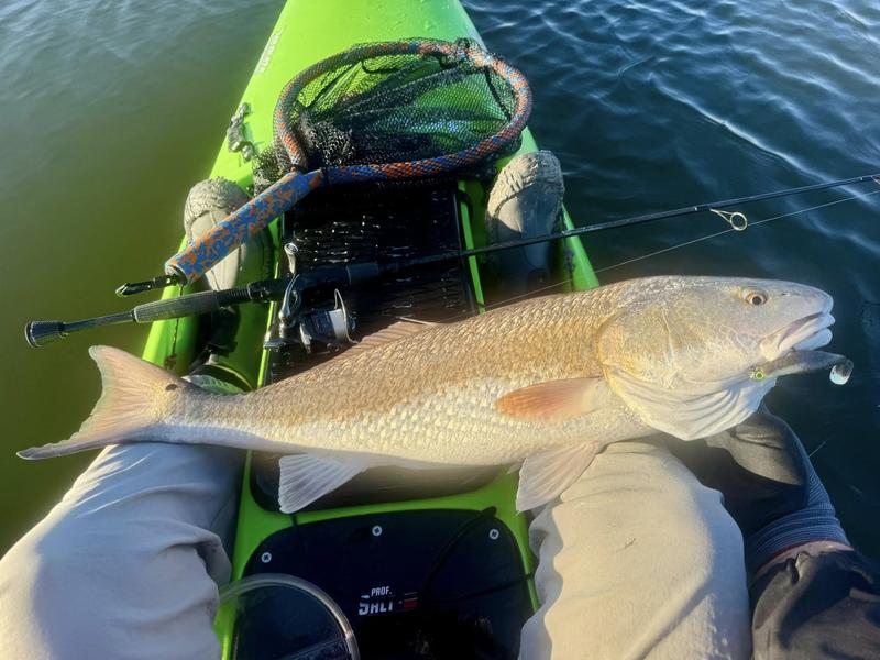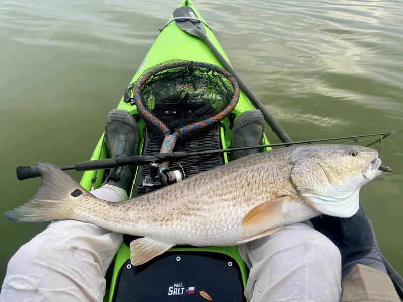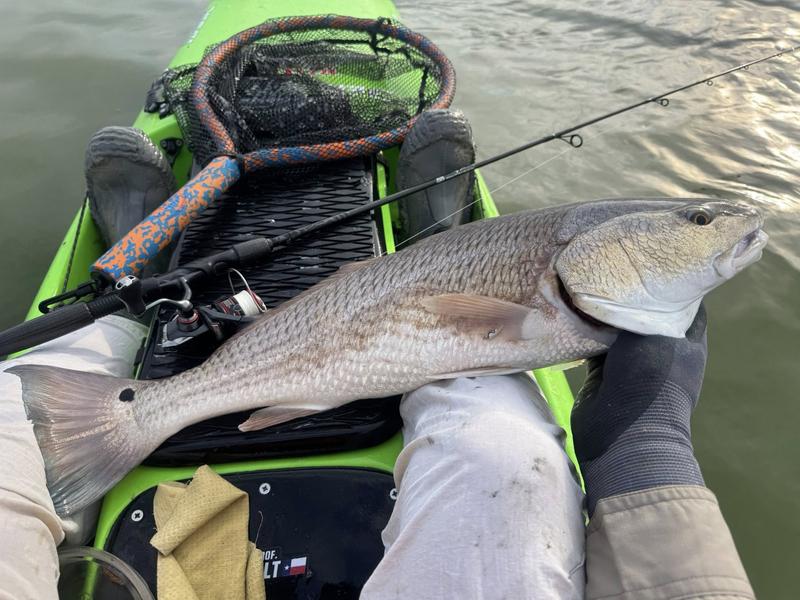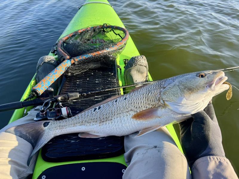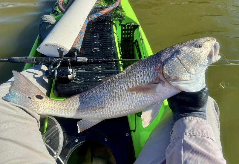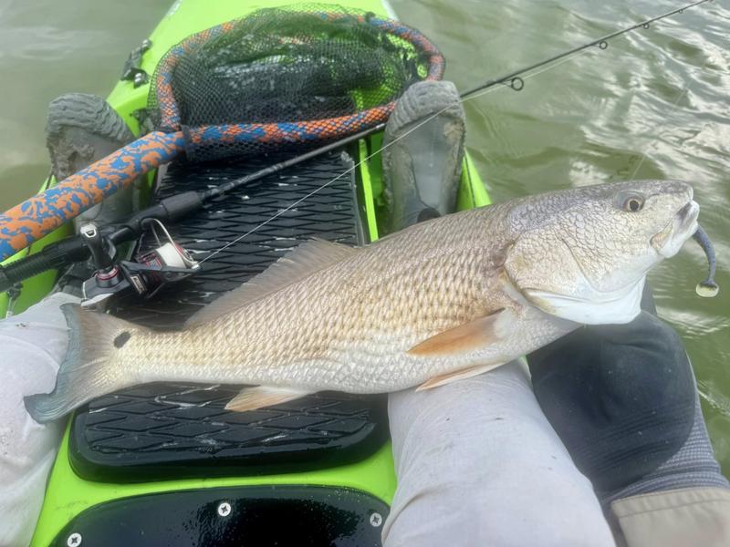 The problem with fishing on Spring Break is the traffic. Finding a quiet place to fish can be difficult, so I decided to give the river a try. I launched behind the veteran's cemetery and worked upriver where there was less chance of encountering traffic. Now that ship channel dredge has ruined the flats I knew I wouldn't be able to paddle there, but I gave the river itself a try. There was more than a fair share of winds, but the river offers a bit of protection so I paddled Monday, Wednesday and Saturday mornings. Monday I found fish feeding around a drain that emptied a long ditch that was loaded with hatchling menhaden. The tide was slowly dropping and emptying the tiny fish into the river for a feast. I just hung around and casted to the fish as they crashed the surface. By the time I hit 13 reds and a drum, I was ready to head home to work on other projects. Wednesday morning the air was still but reds were shy. I paddled eight miles of river edge and found six reds making barely visible wakes ...and behind the kayak six trout and a flounder fell to swim baits that were following behind. The river is ideal for trolling while stalking reds. I paddle 30 or 40 feet from the shoreline watching for me shallow friends, while the baits behind me thumped along near the bottom in 4-8 feet of water. Saturday I returned, worried about weekend traffic, but there were only a couple of boats moving through so it worked pretty well. Fish were staying quiet, but I found four barely perceptible reds and trolled up five trout so no complaints here. Three trips gave me 24 miles of paddling, 22 reds, a dozen trout and a flounder and drum. Now it's back to work to catch up on emails and meetings.