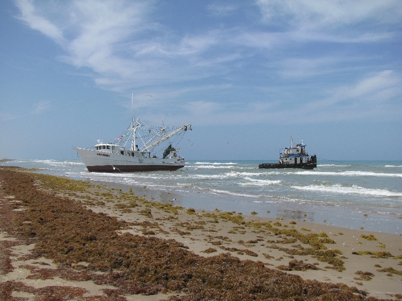 So how does a big 'ol shrimp boat get beached in calm water? Where is the anchor (s)? Captain asleep at the wheel or lost? I just don't get it. Confused